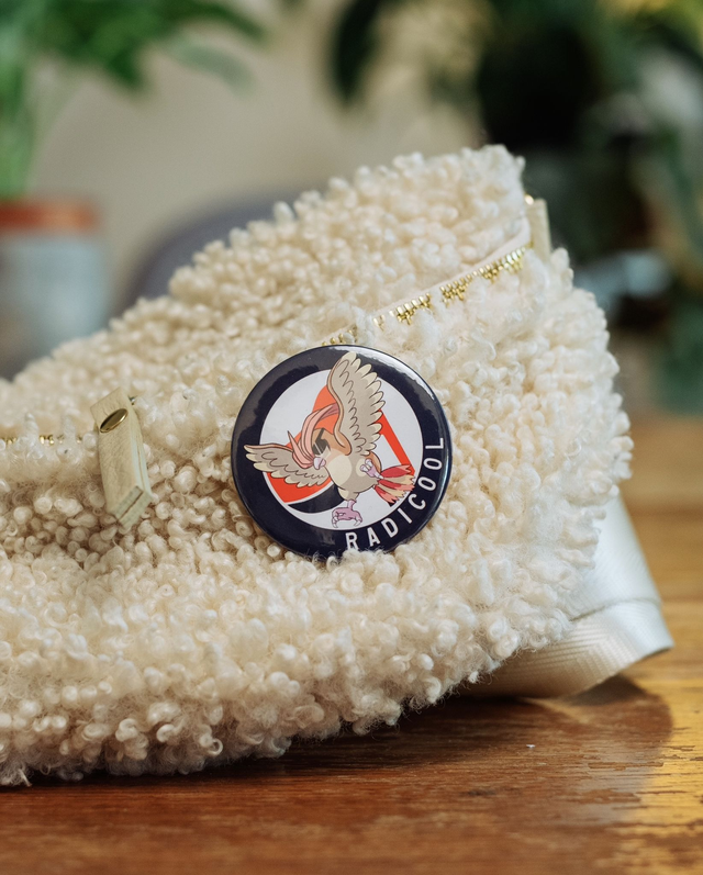 Badge Radicool 58mm à accrocher à vos sacs, bananes, vestes…