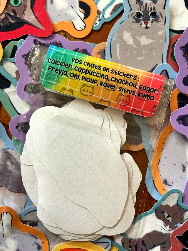 Sticker autocollant de VOS chats 🐈 Chaque annĂ©e je vous propose de transformer vos chats en produits sur Instagram, voici le rĂ©sultat de cette annĂ©e 2024 ! Ils ont Ă©tĂ© dessinĂ©s avec amour et vos photos ❀